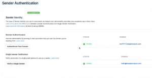 You should see “Verified: Yes” status in your sender authentication section.